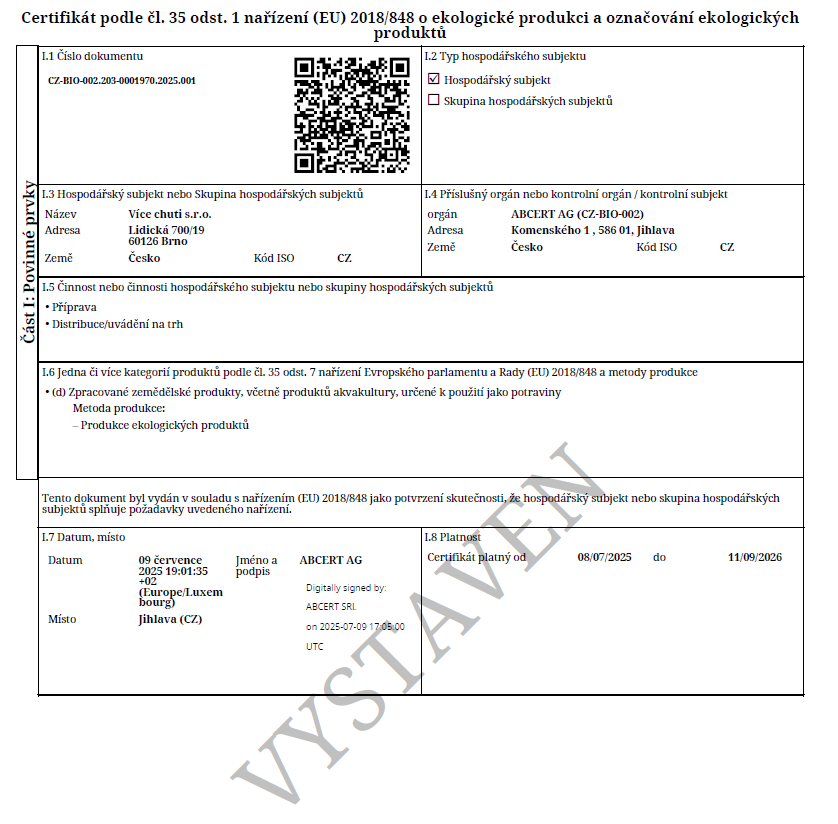 Náš BIO certifikát v plné velikosti si můžete prohlédnout níže nebo zobrazit v plné velikosti zde.