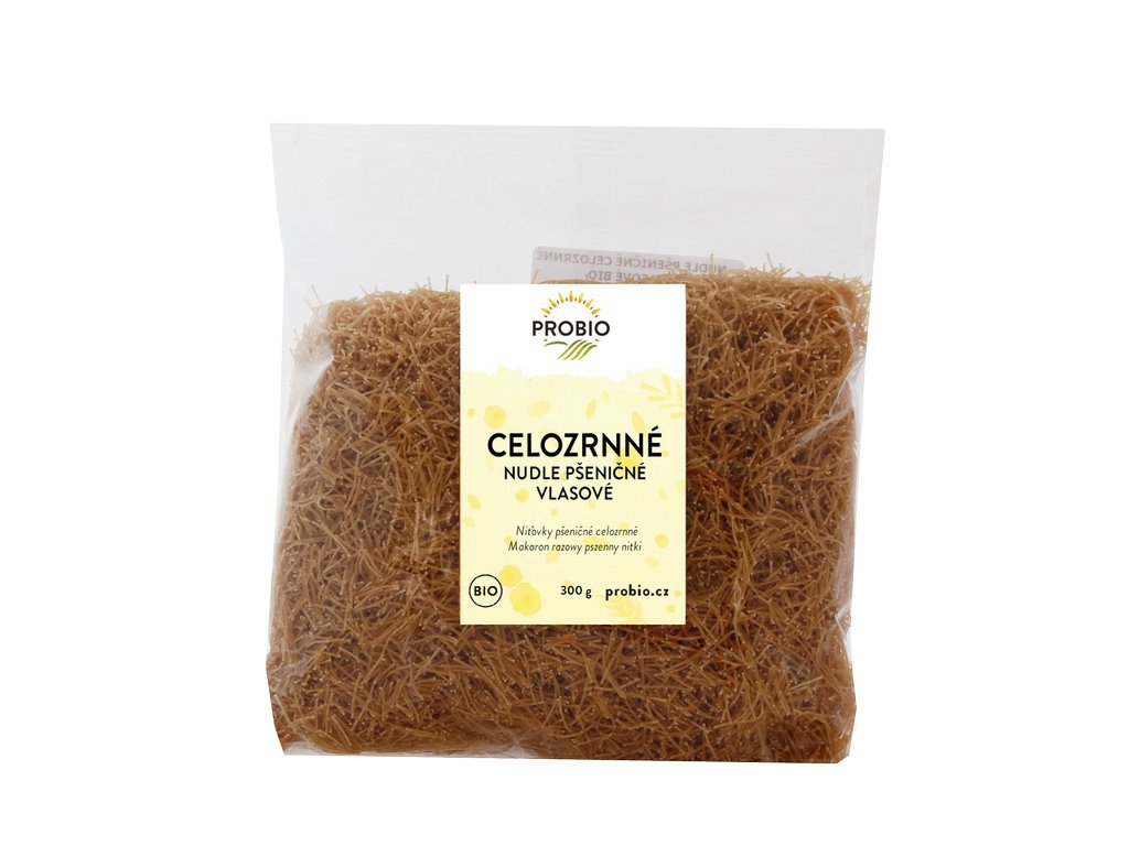 Bezvaječné nudle z celozrnné mouky, která obsahuje obal zrna a klíček. Jsou bohaté na vlákninu, bílkoviny a zasytí na dlouhou dobu. Vhodné do všech polévek.Složení: 100 % celozrnná pšeničná mouka BIO