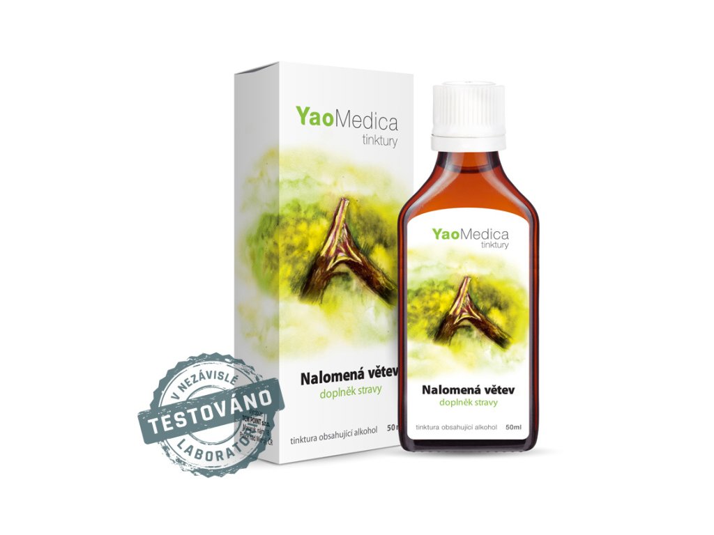 Tinktura Nalomená větev obsahuje směs bylin, vychází z receptu tradiční čínské medicíny Gu Sui Bu Wan. Při výrobě jsou použity suroviny nejvyšší kvality. Ty jsou nadrceny na jemný prášek a následně probíhá proces macerace v 50% lihu po dobu jednoho měsíce. Hotová tinktura již není dále ředěna. Při užívání se účinné látky uvolňují v dutině ústní a mají tak vyšší účinnost.
